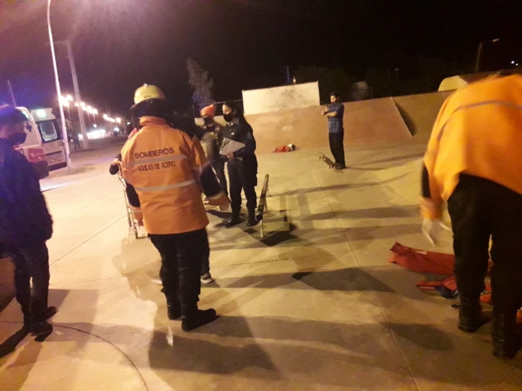 Siendo la hora 20.22, Bomberos Águilas de Acero, se dirigieron por Avenida Ramírez de Velasco, más precisamente en el Skatepark, a una caída de altura.