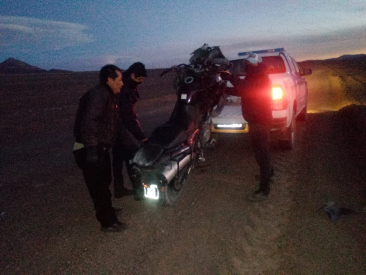 Según informó Personal de la Comisaría de Vinchina, alrededor de las 15.30 se tomó conocimiento de un accidente de una pareja en moto en la Reserva Laguna Brava por un llamado al 101.