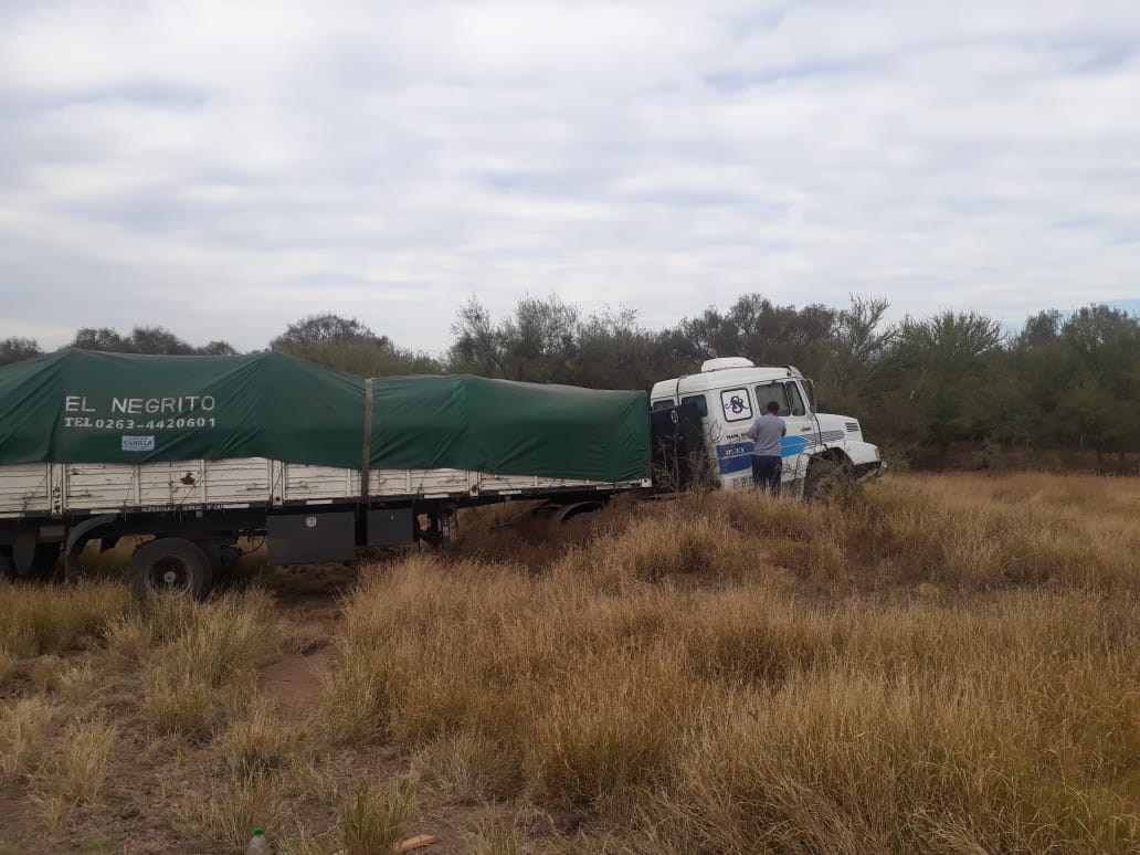 El conductor mayor de edad perdió el control del camión y terminó en la banquina. Ocurrió este jueves, cerca de las 13:30, en Ruta Nacional N° 79, a 28 km distante de esta ciudad (acceso Este, con dirección a Casa de Piedra).