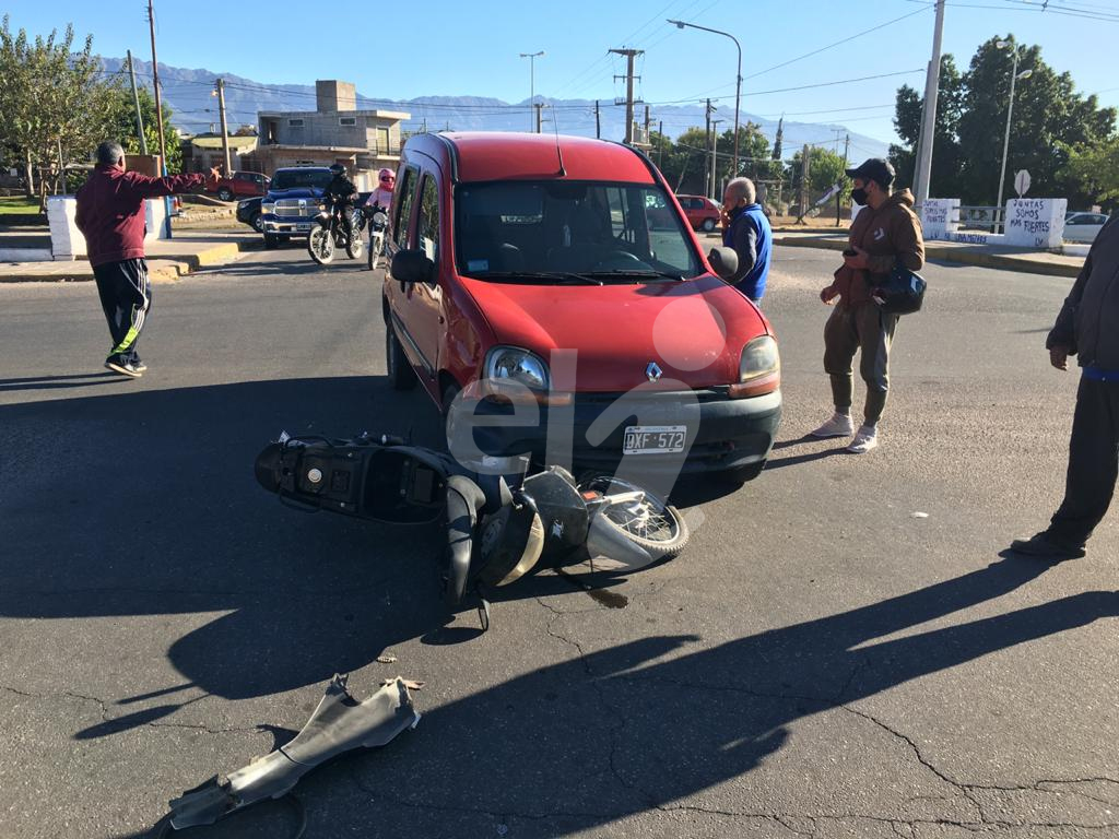 En la mañana de este viernes en la intersección de Santa Fe y Julio Cesar Corzo se produjo un siniestro entre una motocicleta y un utilitario marca Renault Kangoo.