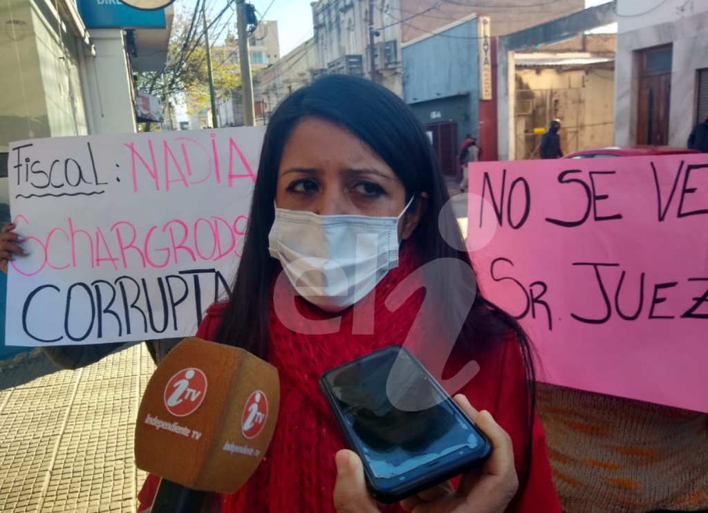 En la mañana de este lunes, familiares y amigos de Rocío Bazán se concentraron frente al edificio del Ministerio Público Fiscal reclamando y rechazando el pedido de la fiscal Nadia Schargrodsky, quien solicitó 4 años de prisión para Ángel Ruarte. Eli Atencio, madre de la joven habló con los medios y dio su postura ante la decisión judicial.