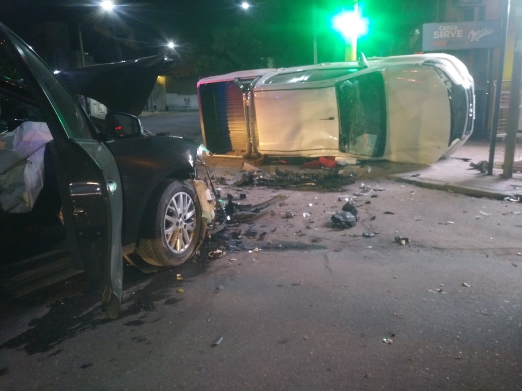 Pasadas las 06:40 horas se produce una colisión con posterior vuelco por avenida Rivadavia esquina San Martín.