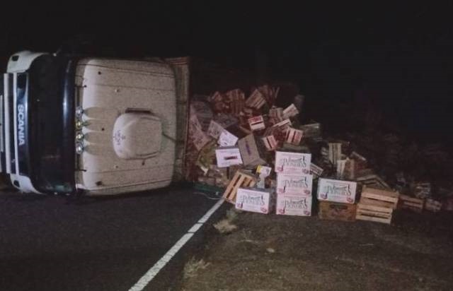 El camión conducido por José Carmelo Cárdenas y su acompañante Jordán Baldarrago Gapsparbeltran, resultaron ilesos, luego del vuelco producido por ruta N° 141 a unos 15 km al oeste de Chepes.