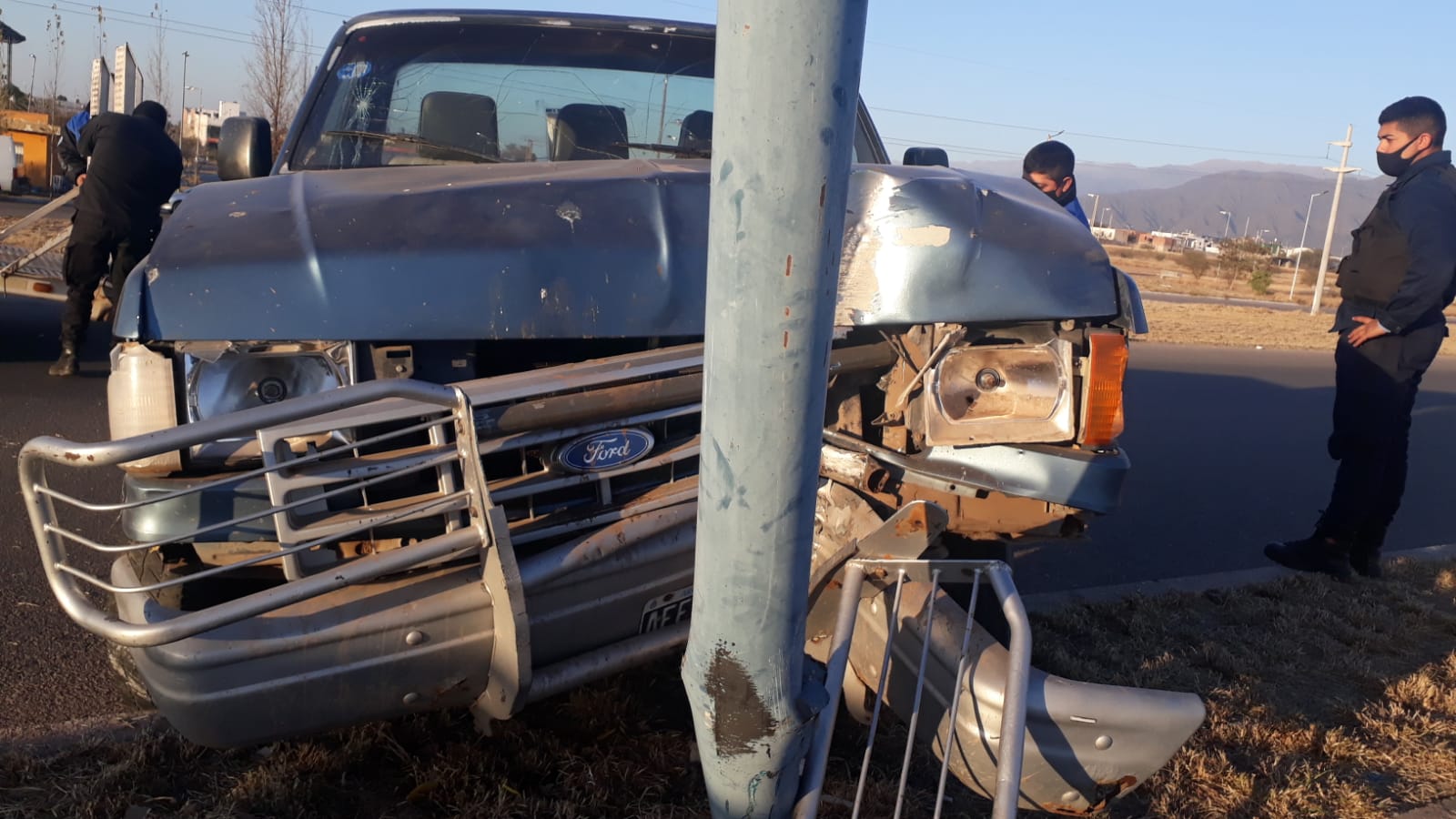 Según se informó, el siniestro se produjo a las 07:40 horas de este sábado, sobre avenida circunvalación frente a terminal de ómnibus, protagonizado por una camioneta Ford F100 color azul conducida por una mujer que circulaba de Oeste a Este por la calzada en mención.