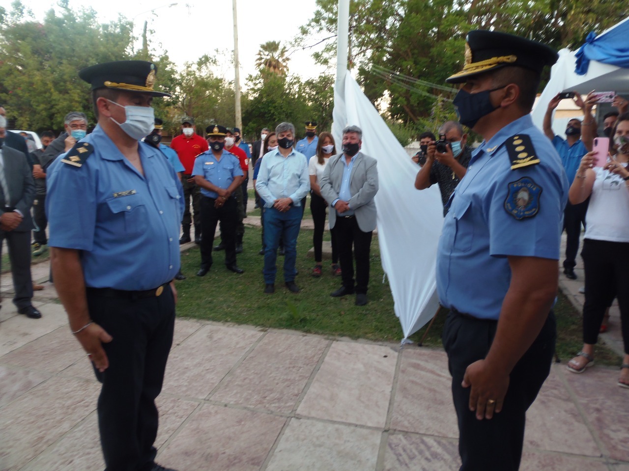 En su emotiva despedida, el Comisario Tello dijo “Me despido con un hasta pronto a toda la comunidad de Loma Blanca. Recuerdo muy bien aquel 10 de Diciembre del 2.020 cuando llegué a este lugar a hacerme cargo de esta nueva sub. Comisaria, créanme vine con un poco de miedo porque no conocía a nadie y es algo que agradezco a dios que me toco estar nueve meses. Es empezar de nuevo porque era una nueva sub comisaria que se inauguraba, había que conseguir desde una hoja de papel hasta un móvil para esta subcomisaria”.