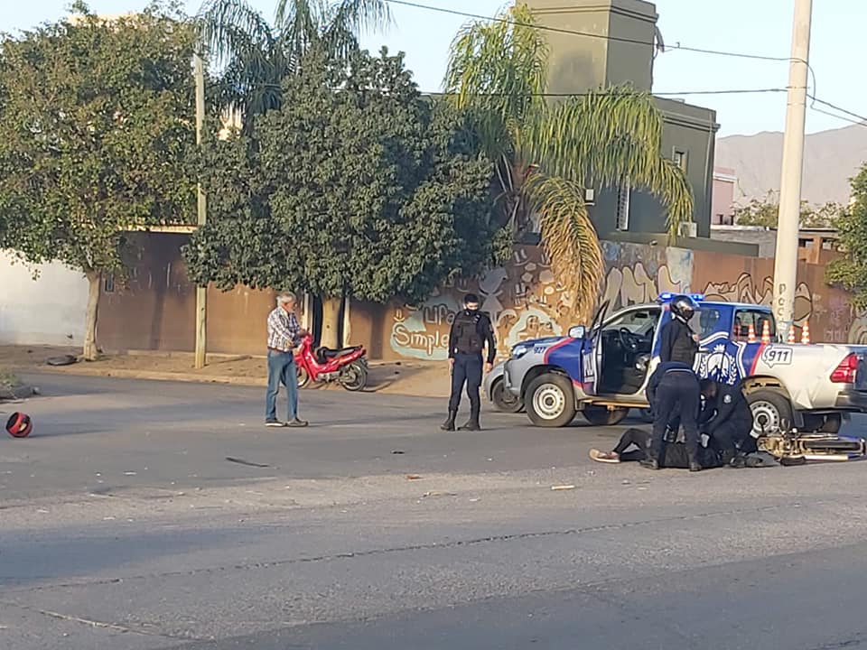 El siniestro vial se produjo sobre las avenidas Ramón Navarro y René Favaloro en donde una motocicleta colisionó con un automóvil marca Fiat Duna. En el lugar trabajan personal policial y Servicio de Emergencia 107 asistiendo al conductor de la motocicleta.