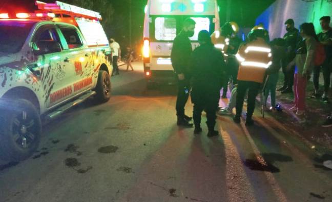 Ambos se conducían en una motocicleta Zanella 110cc, color negra, por Bernardino Gómez y al llegar a la intersección con Luis de Hoyos, colisionan con otra motocicleta, una Yamaha YBR 125cc, color negra, conducida por Cano José Ignacio (31), quién resultó ileso.