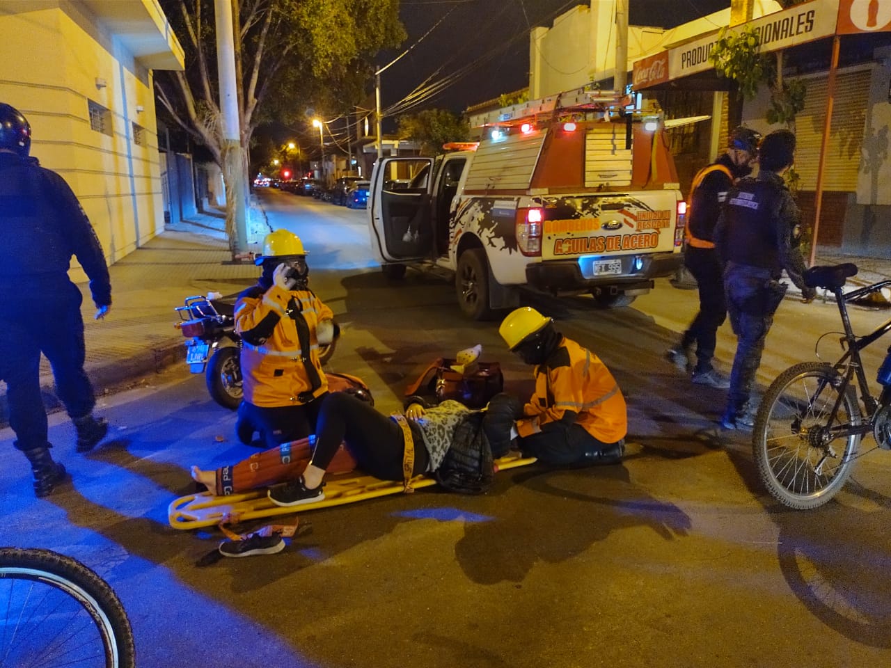 Trabajó Bomberos Voluntarios Águilas de Acero, hasta la llegada del Servicio 107, base 1, a cargo del Dr. Reynoso, quién luego de la evaluación médica, determinó el traslado de la damnificada Castro, al Hospital Vera Barros. También intervino personal policial, a cargo del Sargento Montivero Cristián, de la Brigada Motorizada.