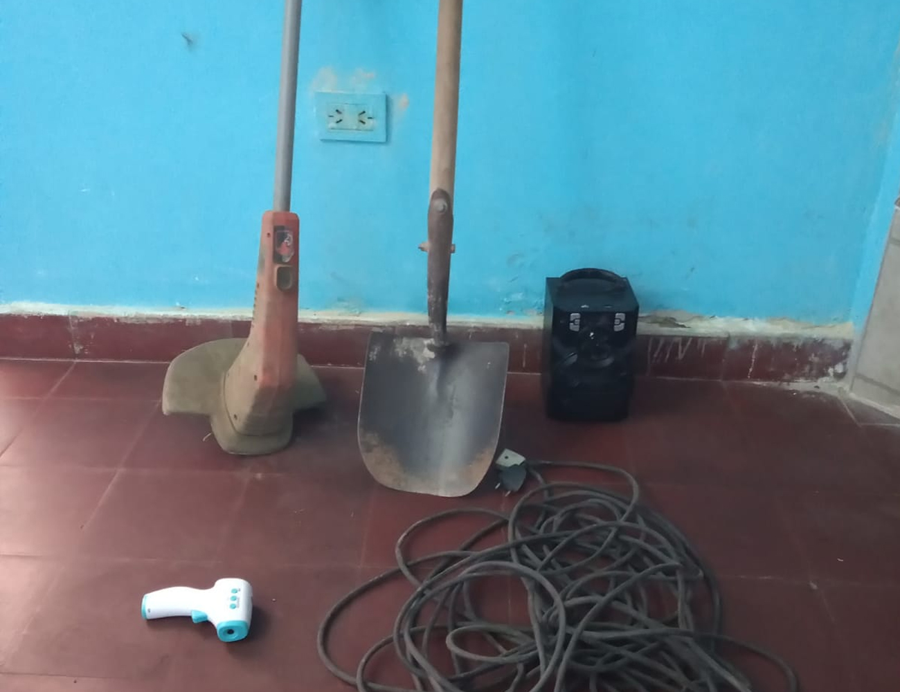 Hoy viernes a horas 13:30 en tareas de investigación el personal de la comisaría procede a recuperar algunos de los elementos sustraídos tales como: una pala cabo largo punta corazón, una bordeadora eléctrica marca Black Denker, un alargue de 20 metros, 1 termómetro corporal, un parlante portátil los cuales fueron encontrados enterrados en un domicilio abandonado de Estación Mazán.