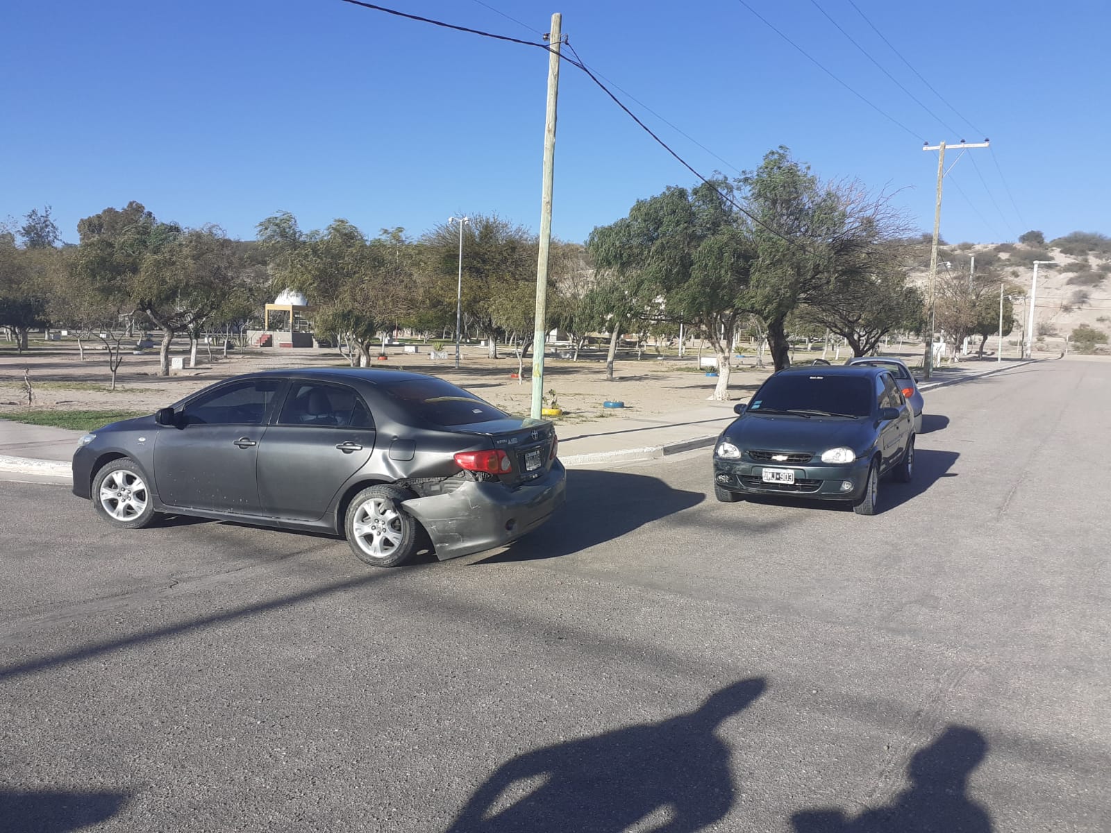 El siniestro vial se registró este lunes a las 08:30, a partir de tomar conocimiento mediante equipo de comunicación sobre un hecho de transito por calle publica s/n del barrio Santa Rosa, al lado de la plazoleta, donde en unidad móvil legajo 933, a cargo del Comisario Ochoa en conjunto al Comisario Barrionuevo, quienes se trasladan al lugar y logran constatar que un automóvil de marca Toyota, modelo Corolla de color gris, conducido por el ciudadano Hernan Herrera de 47 años con domicilio por calle publica s/nro. del barrio Santa Rosa, circulaba en sentido cardinal de sur a norte, al llegar a las intersecciones de calle publica sin número, por el costado de la plazoleta, en dirección cardinal este, es colisionado por otro vehículo de marca Chevrolet, modelo Corsa de color verde, conducido por el ciudadano Dario Armando Aguirre de 37 años con domicilio por calle publica s/n del barrio 30 viviendas, quien circulaba por calle publica en sentido cardinal de este a oeste, donde por razones a establecer, impactan causando solo daños materiales.
