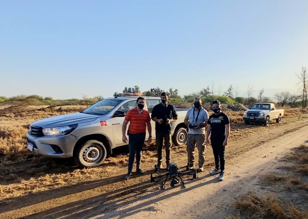 Seguidamente, personal de otras divisiones de la Policía de la Provincia, el 911, Defensa Civil y personal de EDELAR que aportaron un dron para el seguimiento aéreo, comenzaron un rastrillaje desde la bifurcación de Paraje San Javier, ingresando por diferentes Puestos y Parajes, conjuntamente con la Comisaría de Patquia, logrando a las 17 dar con la ubicación del automóvil Renault 18 color blanco, dominio RTJ 342, el cual presentó desmoronamiento de parabrisas y vidrio de ventanilla derecha, orificios de aparentes disparos en luneta lado derecho y en el interior del mismo. Siguiendo el rastro de una huella de calzado que descendió de dicho rodado e ingresó campo adentro hacia el cardinal oeste, a 20 metros se observó una 3ra caja de la misma dimensión que las que se encontraban dentro del automóvil.