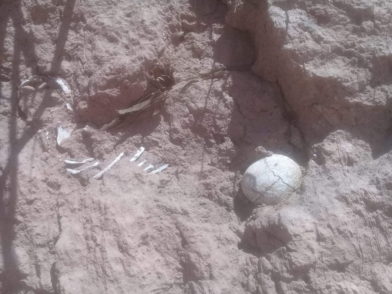 Una vez en lugar se constata que se trataría de restos óseos humanos los cuales se encontraron enterrados en una barranca, donde se podía visualizar el cráneo y partes de costillas.