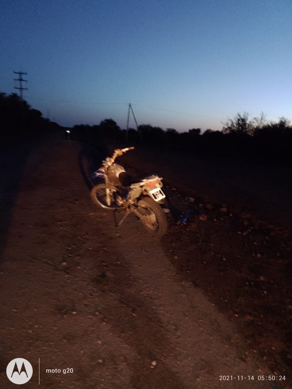 Una motocicleta, marca Maverick, modelo Dual Inyection System 200 c.c de color azul, al mando de Roberto Nicolás Rivero de 35 años con domicilio en el Paraje La Aguadita, circulaba de Este - Oeste, el mismo aparentemente habría colisionado un animal vacuno, el cual no se encontraba en el lugar al momento del arribo policial.