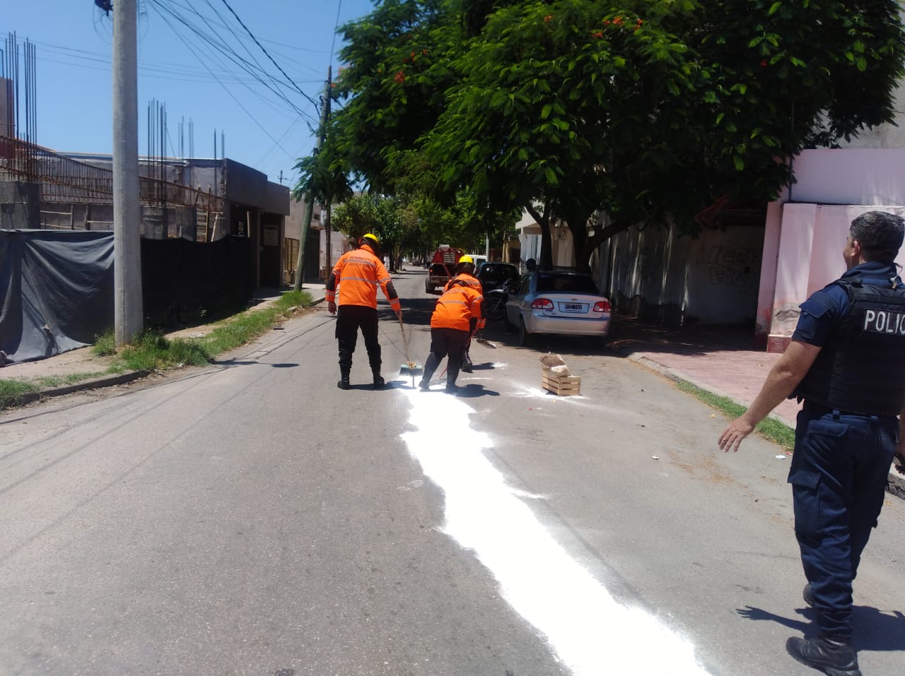 El hecho se produjo por Av. Alem y pasaje Albert. donde se constata una pérdida de combustible, a causa de una motocicleta que habría sufrido un siniestro minutos antes.