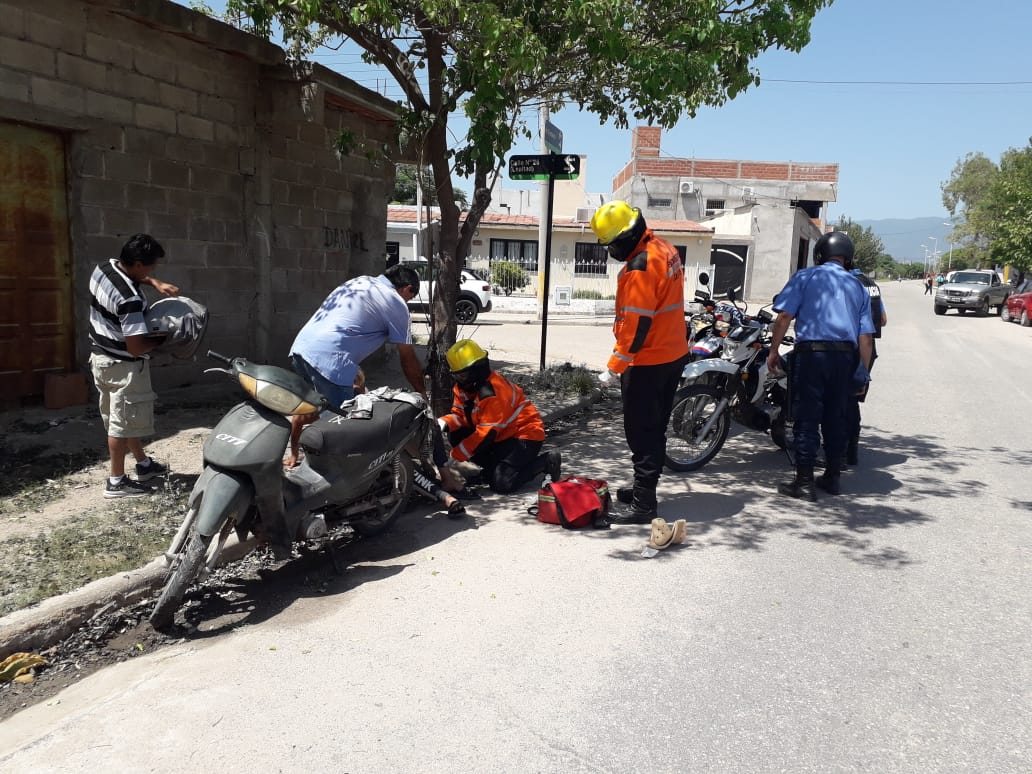 Según informaron los ocupantes de la motocicleta, habrían impactado con un perro que se les cruzó, para terminar cayendo pesadamente sobre la cinta asfáltica. El hecho ocurrió a las 11:36 por Av. Costanera y calle 22, del barrio Infanteria II.