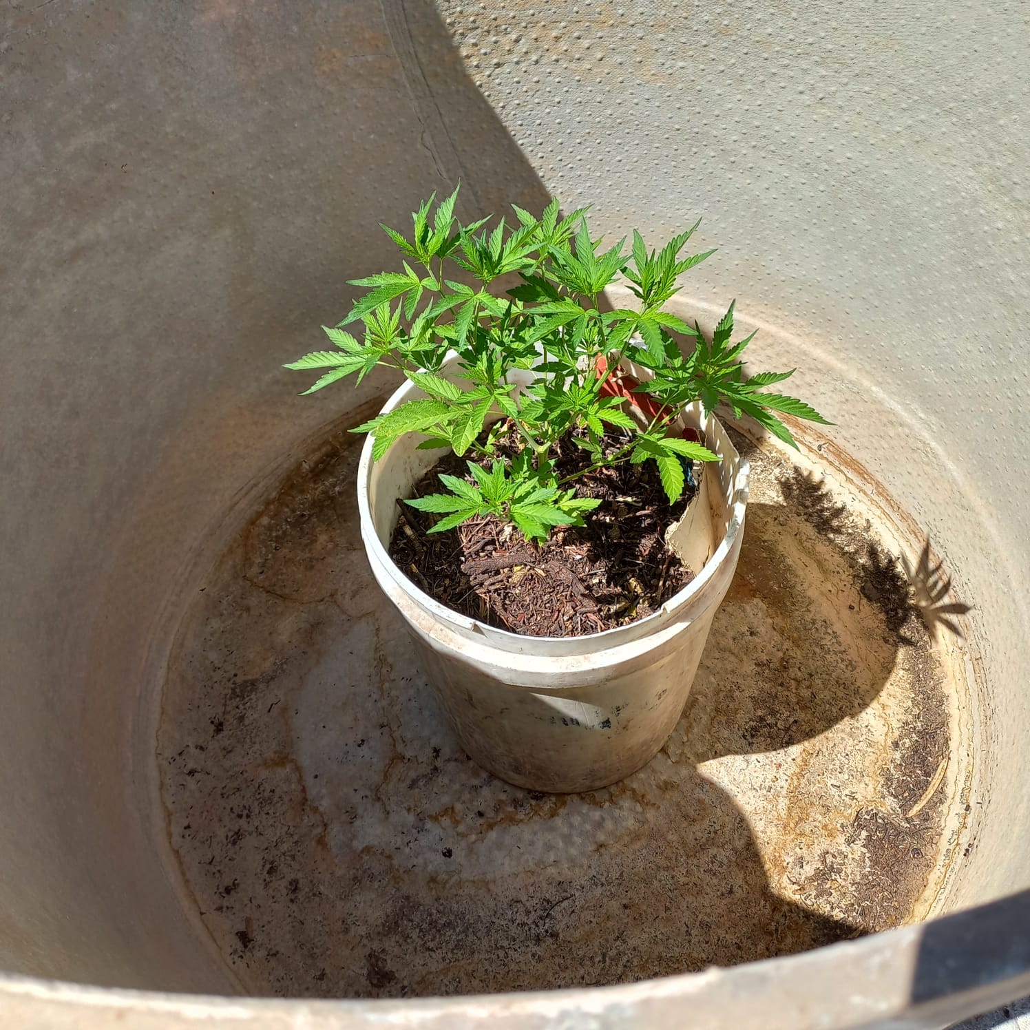 Al tomar conocimiento, la instrucción sube al techo verifica lo dicho, dentro del tanque de agua de 200 litros había un balde de 20lts con una planta de cannabis sativa de unos 20 centímetros.