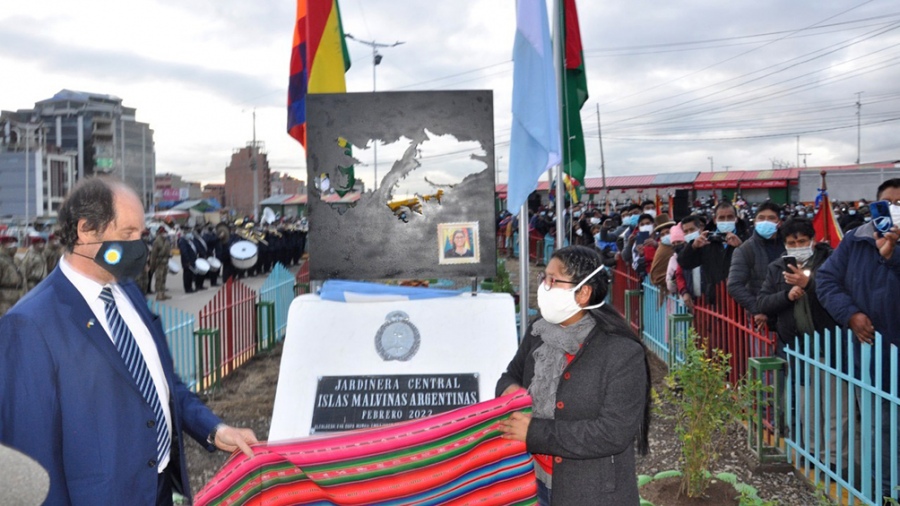 Al mismo tiempo, la Plaza y Jardinera Central "recuerda a los caídos y veteranos del conflicto del Atlántico Sur", explicó en un comunicado la embajada argentina en La Paz.