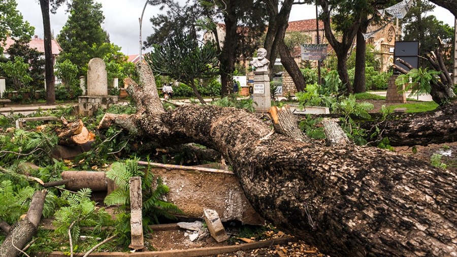 En el interior, en Antsirabe (365 kilómetros al noroeste de Mananjary), el viento derribó grandes árboles en el parque público de la ciudad.