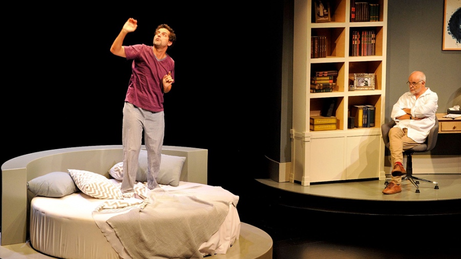 El actor muestra eficacia y soltura en su papel protagónico de la obra escrita por Oscar Martínez, junto a Juan Leyrado y Florencia Raggi, bajo la dirección de Javier Dualte.