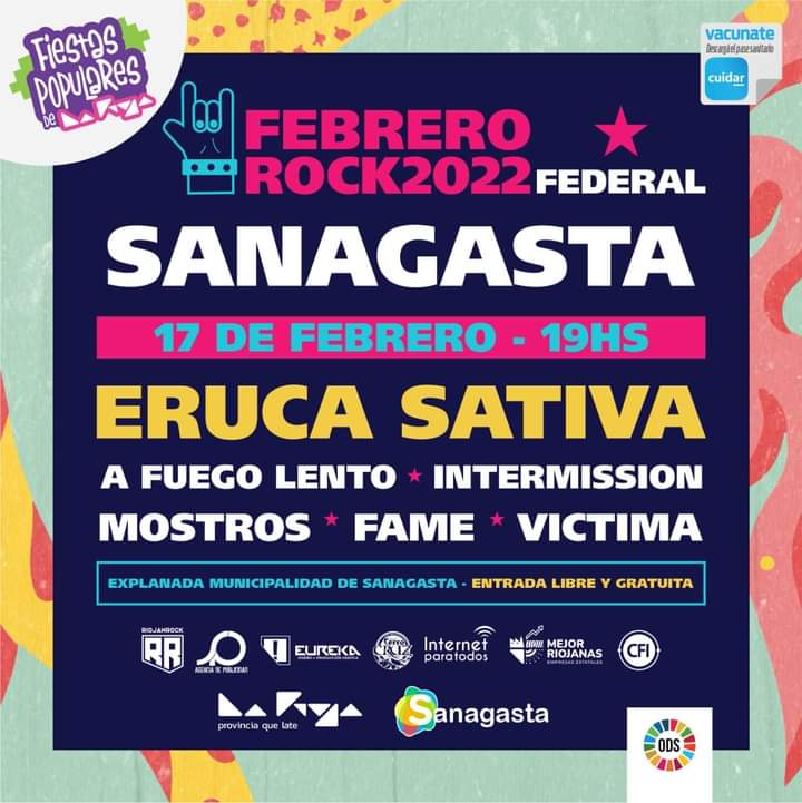 El Festival de rock riojano se mueve por la provincia, esta vez para realizarse en la villa veraniega de Sanagasta con la presentación de la banda nacional Eruca Sativa junto a bandas locales.
