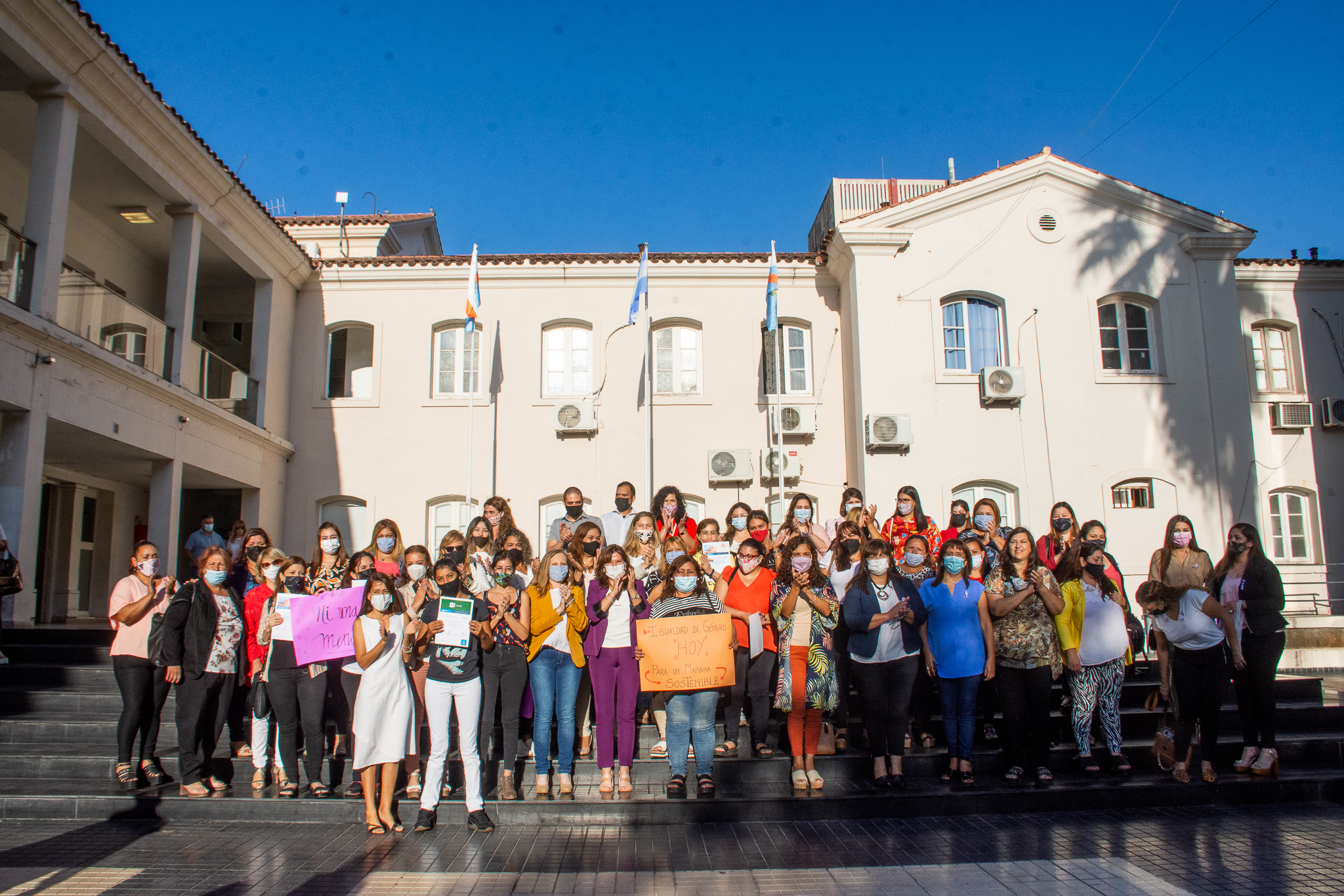 Luego del izamiento conmemorativo por el Día Internacional de la Mujer, la intendenta Inés Brizuela y Doria, acompañada por el Gabinete Municipal, la diputada Teresita Luna, su par Gustavo Galván y las concejalas de Juntos por el Cambio, Luciana de León, Viviana Díaz y Mónica Villafañe; anunció las acciones que se llevarán adelante en la gestión, para garantizar la igualdad y sustentabilidad, en las políticas públicas que se llevarán adelante, en los ámbitos de género y ambiente.