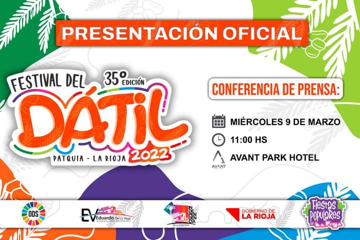 Desde la organización del Festival del Dátil, invitan a los medios de comunicación de la provincia a participar de la conferencia de prensa por el lanzamiento de la edición número 35° de la fiesta popular de Patquia.