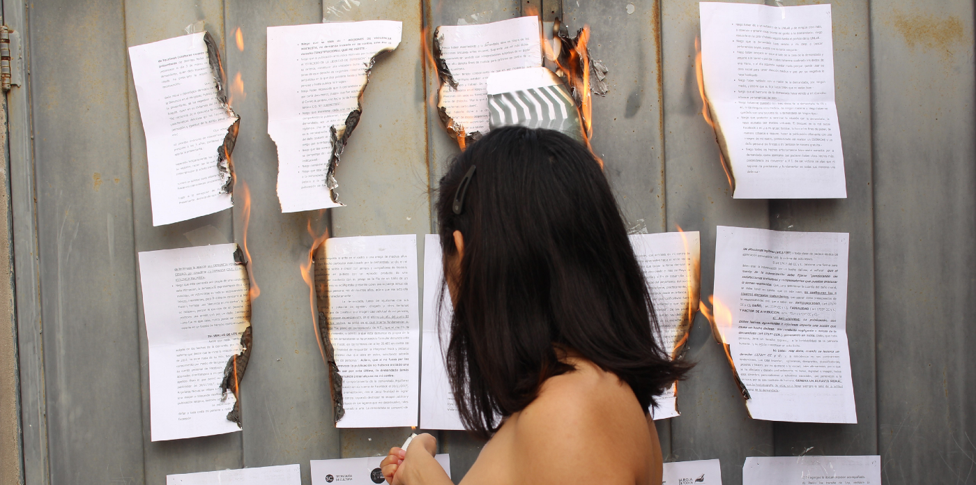 AA es una artista visual riojana, militante política y sobreviviente de violencia de género. La joven contó a través de facebook una relación violenta con su ex pareja, al que llamaremos RS. Lo hizo motivado por una experiencia similar que le contó a otra víctima de este sujeto y para alertar a otras mujeres. AA terminó con una demanda por parte de RS.