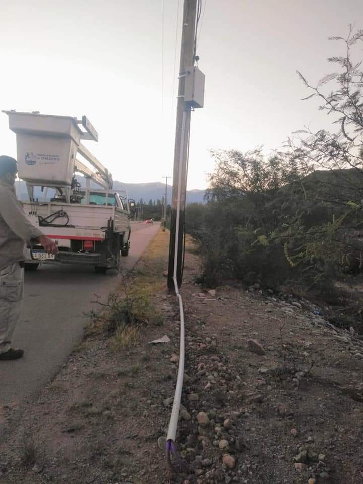 Personal de la Dirección de Electromecánica, que depende de la Secretaria de Servicios Públicos de la Municipalidad de Chilecito, trabajó en la reposición del material dañado y robado, a los fines de no resentir el servicio de iluminación en este tramo, el cual fue hace pocos meses inaugurado.
