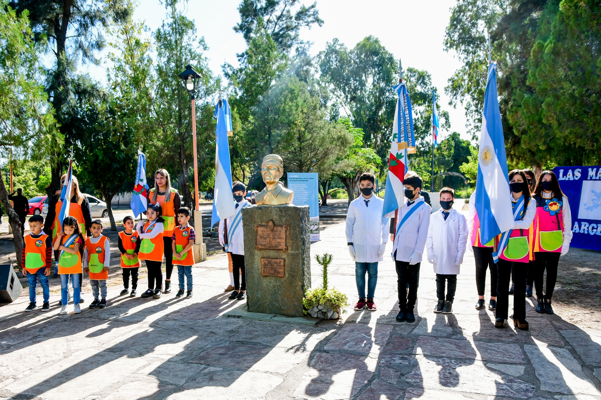 Con las banderas de ceremonia del JIN N° 10, la Escuela N° 79 “Amigo Devoto” de Chila y la del IDFTP “Victoria Romero”, acompañadas de sus directivos Margot Romero, Edith Vargas y Rosana Peñaloza de Flores se entonaron los himnos, se hizo un minuto de silencio por los caídos en Malvinas y se entonó la "Marcha a Malvinas”. Luego se colocaron ofrendas florales en memoria de los homenajeados.