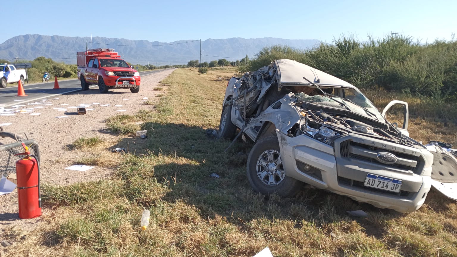 El siniestro vial ocurrió a las 09:43 de este martes donde se produce una colisión con posterior vuelco de una camioneta Ford Ranger de color gris, perteneciente a la empresa Foraco que circulaba por Ruta Nacional 38 al mando de Nelson Quezada de 42 años proveniente de la provincia de Mendoza.