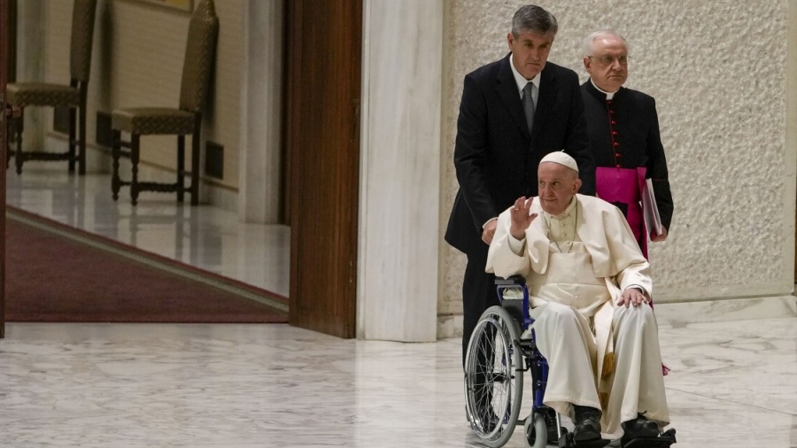 El pontífice, que reducirá los desplazamientos en las próximas semanas, llegó en una silla de ruedas, acompañado por uno de sus colaboradores, a la audiencia prevista en el Aula Pablo VI del Vaticano.