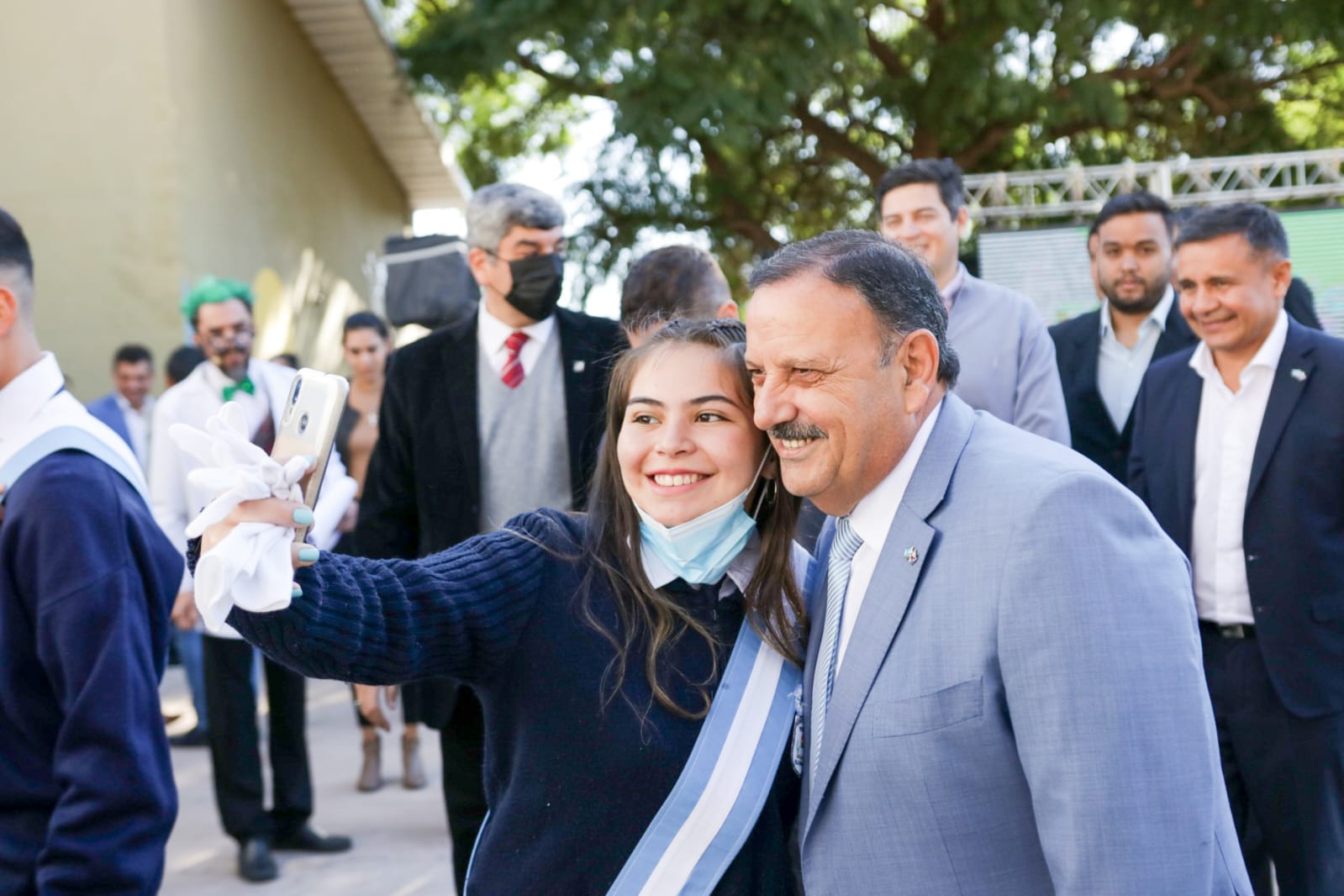 En el marco del 431° aniversario del Departamento Sanagasta, el gobernador, Ricardo Quintela, visitó el Colegio Secundario Provincial con el programa en vivo Estamos en la Escuela donde encabezó el acto de inauguración de la primera Aula Maker que permitirá a los estudiantes tener un mejor acceso a la educación. En la oportunidad, recorrió la obra del predio deportivo que pretende promover la práctica deportiva en los estudiantes.