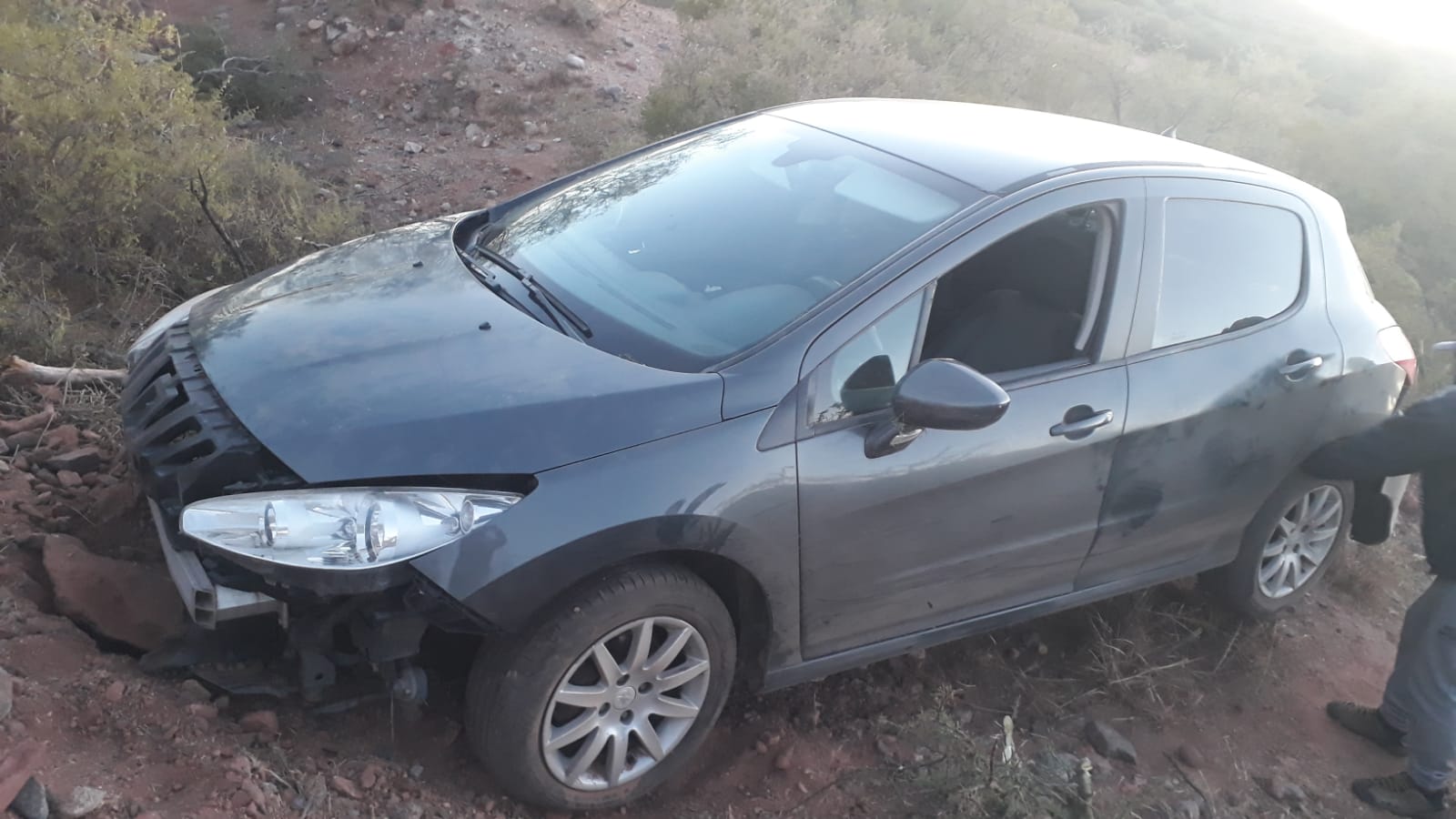 Esta tarde, al rededor de las 19 horas, un auto peugeot 308 de color negro, dominio OGT 045 derrapo de la Ruta Nacional Nº 150 a la altura del km 45, en la localidad de Patquía.