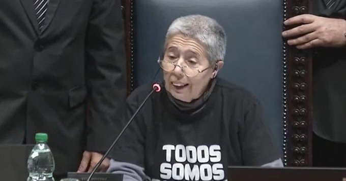 La frenteamplista Liliam Kechichian le pidió entonces a Penadés que precisara si existe un artículo en el reglamento de la Cámara que expresamente prohibiera a Della Ventura usar esa remera, porque en ese caso la oposición estaba dispuesta a pedir un cuarto intermedio para analizarlo.