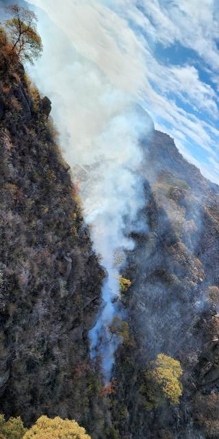 El último parte de bomberos de Chepes, únicos trabajando en el lugar, confirman que “el incendio esta fuera de control, activo, va en ascenso en una zona no accesible y se encuentra personal de bomberos monitoreando el lugar”
