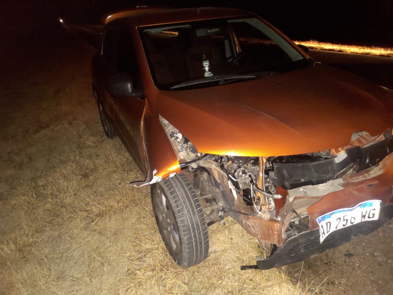 A raíz del impacto entre el automóvil marca Ranaul Kwid de color Naranja, por ruta nacional n° 38, a la altura del km 332, sus ocupantes resultaron ilesos y el hecho vial ocurrió a las 00:40 de hoy.