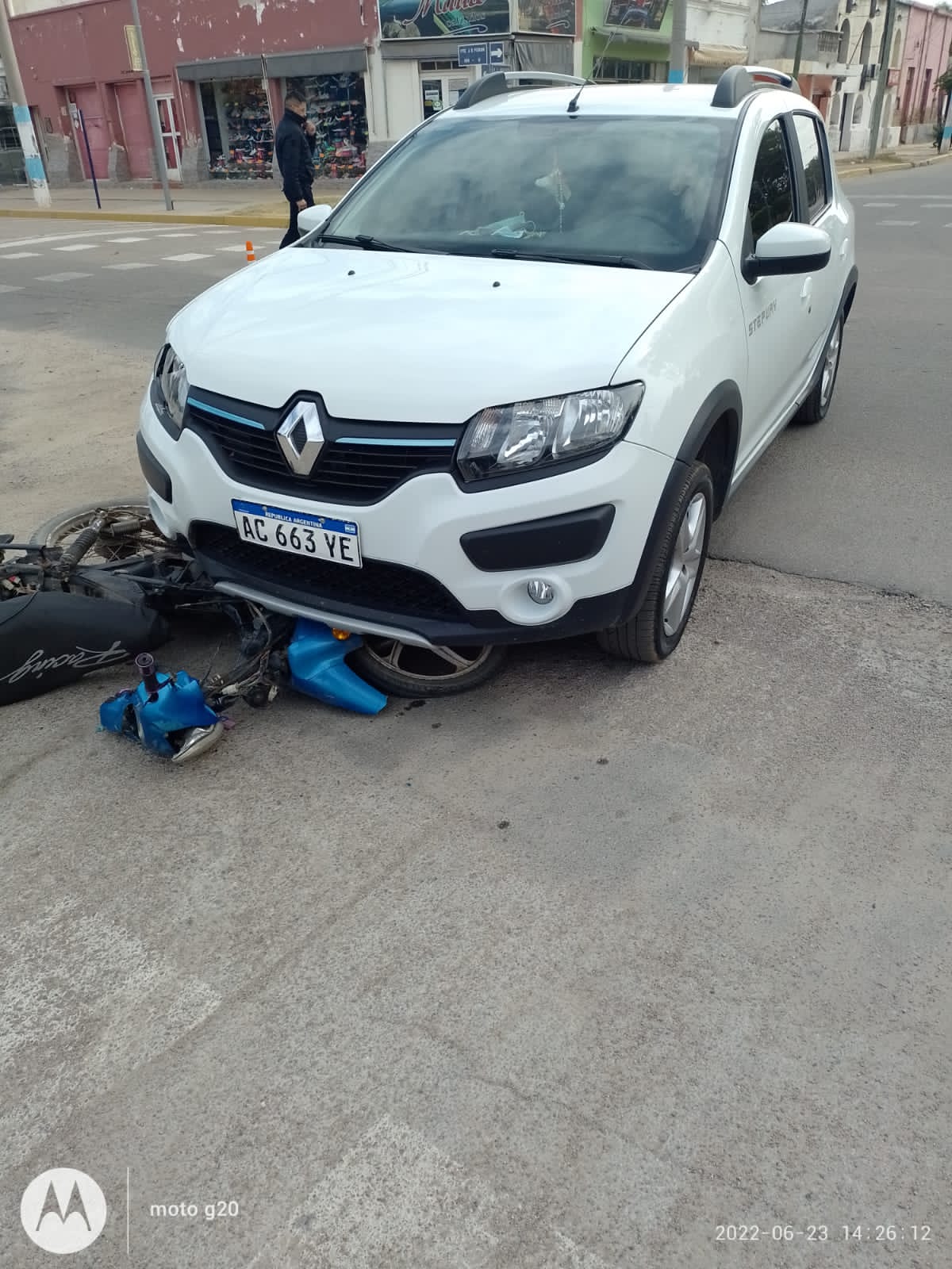 Por otra parte, en la motocicleta marca Corven de color negro con azul, circulaba de oeste a este, la conductora Macarena Ros de 26 años quien sufrió fractura en miembro inferior izquierdo. Además, no poseía casco y circulaba acompañada de una menor de 3 años.