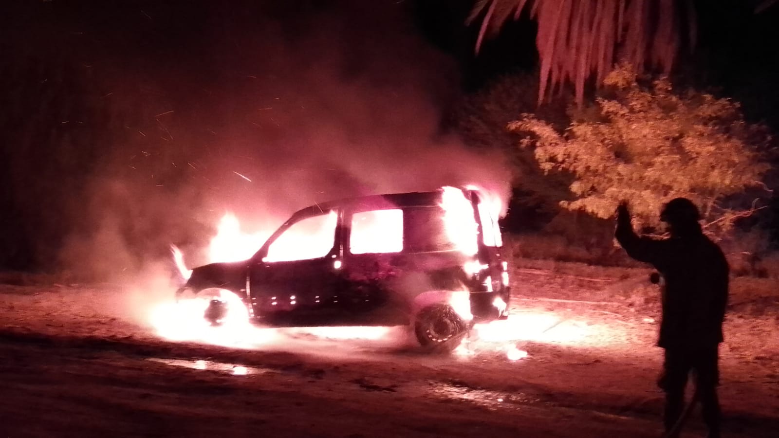 Ante tal situación, se le comunicó al personal de bomberos voluntarios quienes de manera inmediata arribaron al lugar en unidades móviles perteneciente a la ciudad Capital y Chilecito como así también de la localidad, todos a cargo del comandante mayor Walter Alfonso, quienes lograron sofocar el fuego el cual causó daños totales en el rodado.