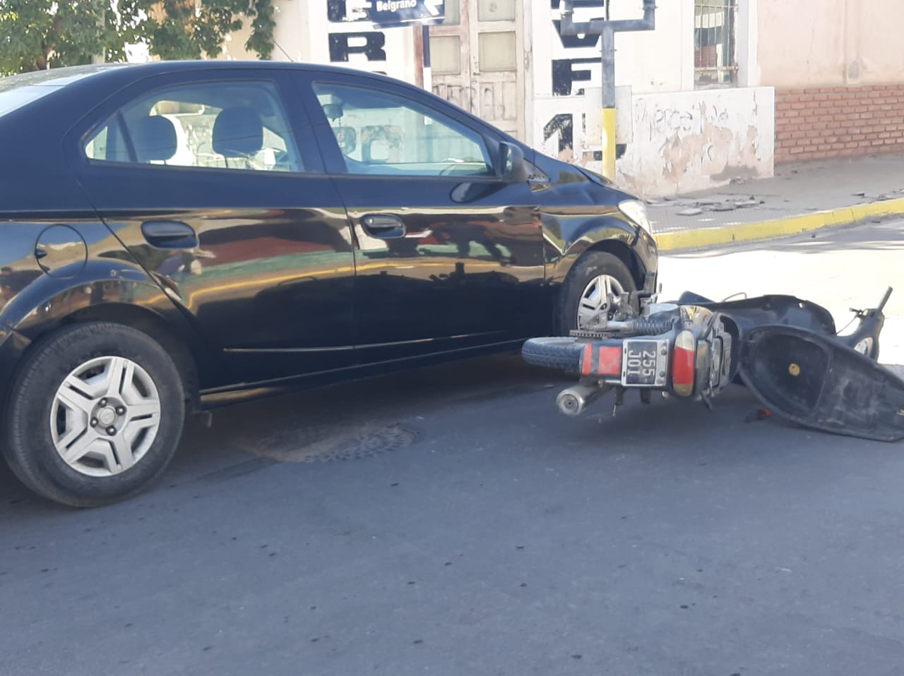 El hecho tuvo lugar entre un automóvil Chevrolet, modelo Prisma, dominio AB528TG de color negro; al mando de Luis Alberto Herrera (74), con domicilio en calle Del Norte esquina 20 de Mayo del barrio centro de esta ciudad y una motocicleta marca Mondial, modelo Max de color negro, conducida por la ciudadana Pamela Quintero, que circulaba sin casco protector.