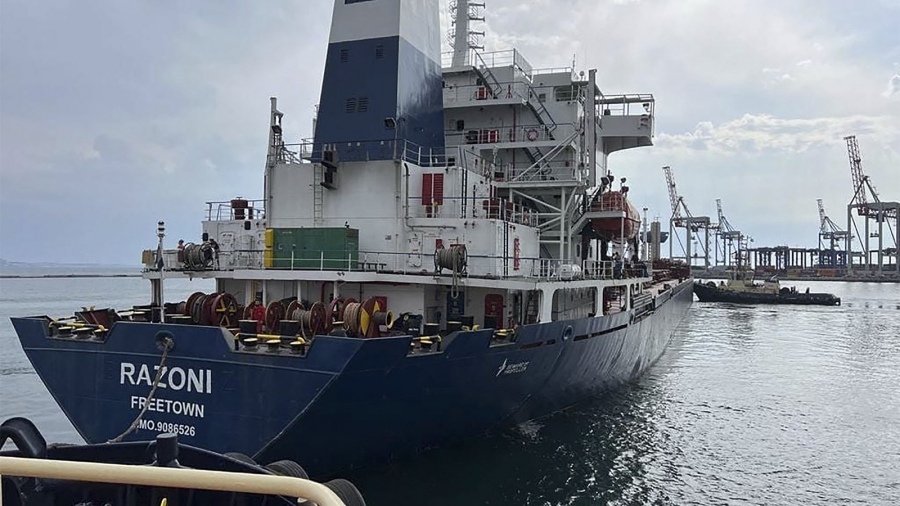 El barco Razoni, con bandera de Sierra Leona, zarpó el lunes del sureño puerto ucraniano de Odesa con 26.000 toneladas de maíz destinadas a Líbano y pasará la noche anclado en alta mar tras arribar a aguas turcas.