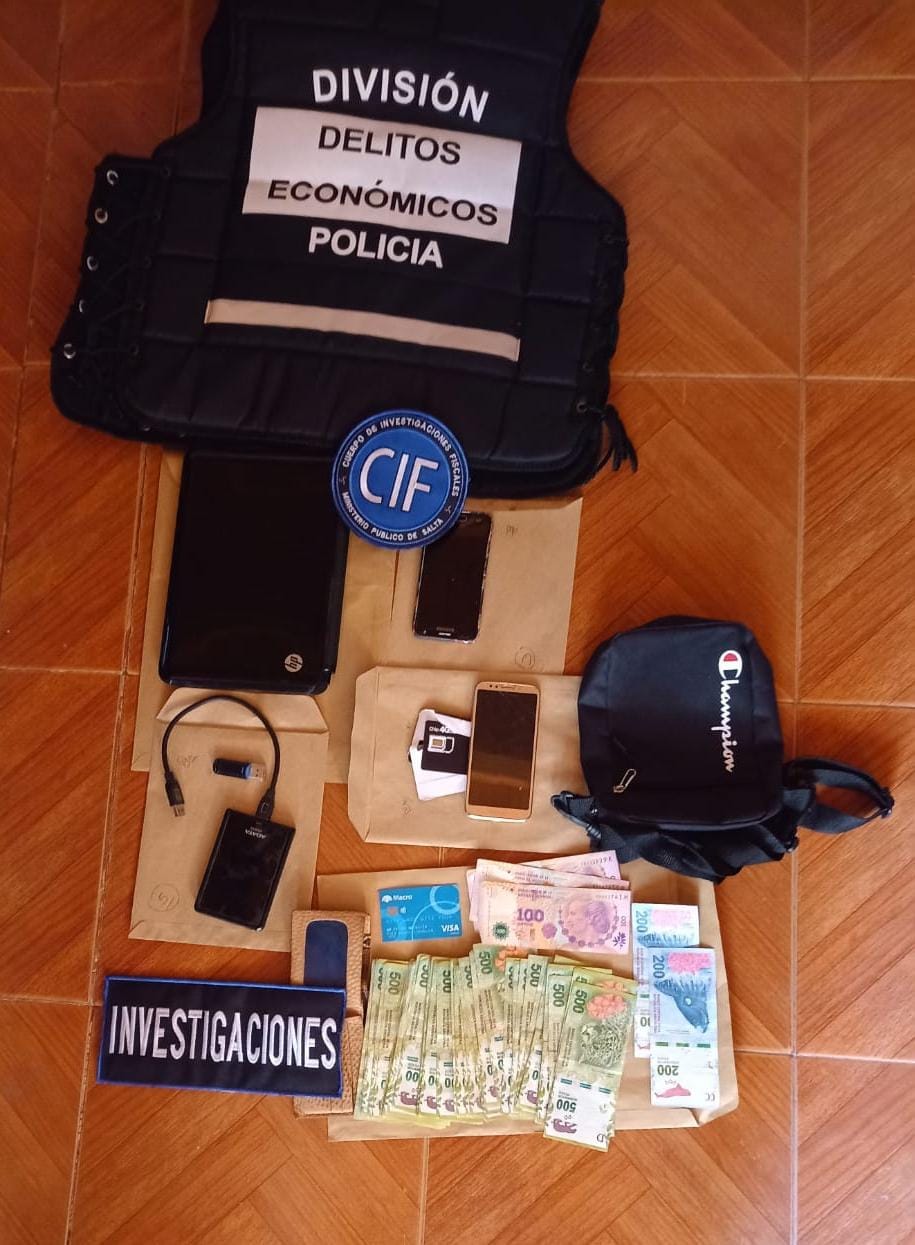 Se secuestraron tarjetas de crédito, dinero en efectivo en pesos argentinos y en dólares, computadoras, notebooks, teléfonos celulares, artefactos tecnológicos de computación y conexión, entre otros.