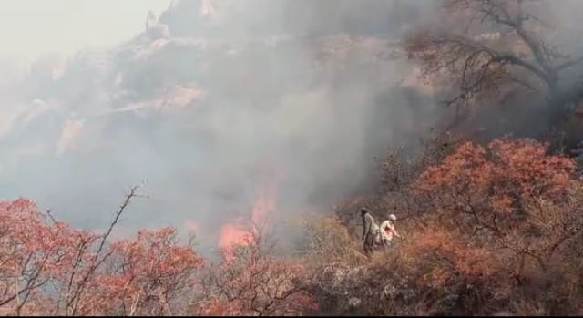 Chepes. Bomberos Voluntarios de Chepes, baqueanos del lugar y personal policial, trabajaron intensamente en un incendio forestal en zona agreste de la localidad de Villa Casana, Dpto. Rosario Vera Peñaloza.