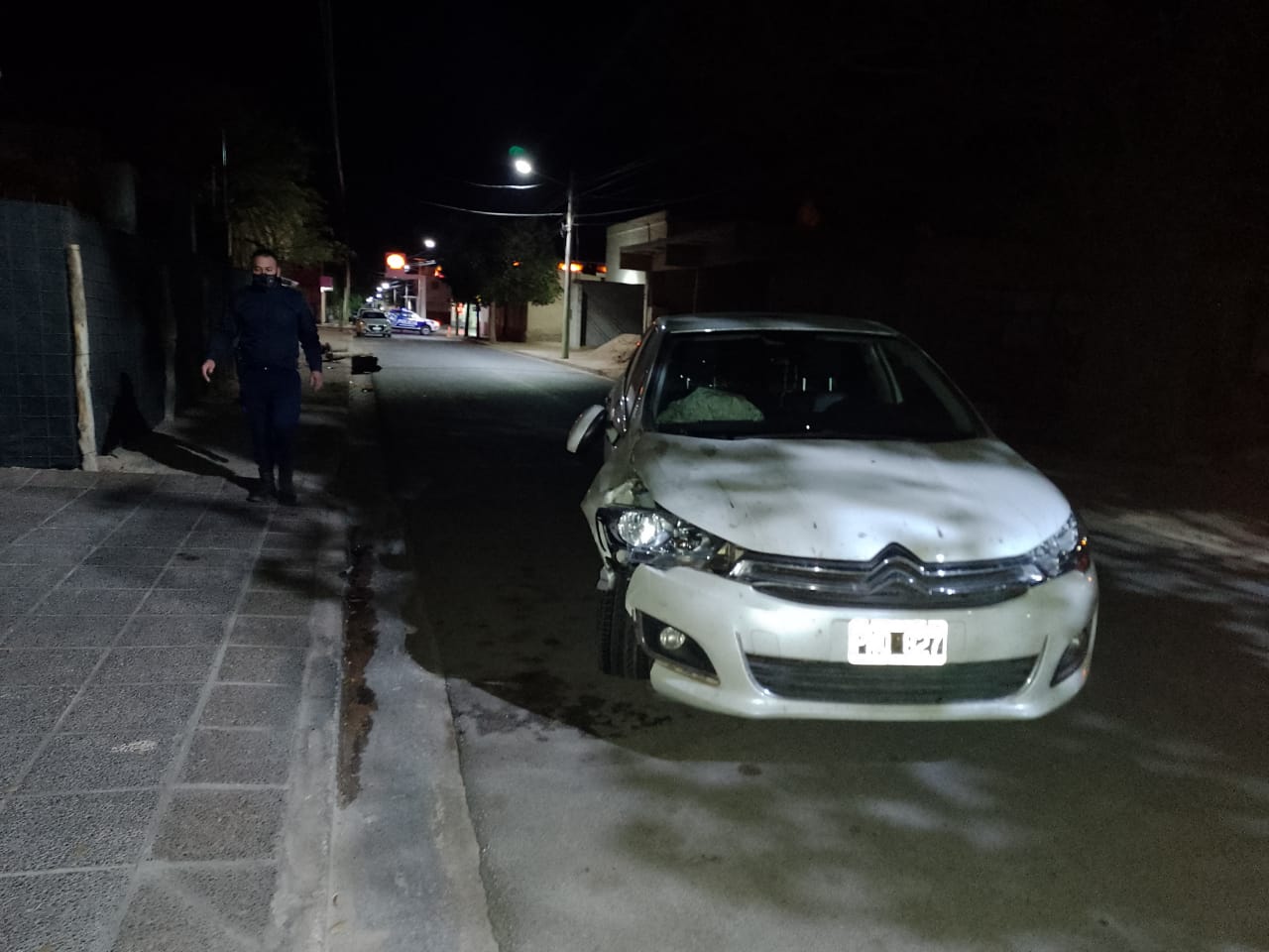 Se trata de una camioneta Toyota modelo Hilux, color gris, y un automóvil marca Chevrolet modelo Aveo, color azul, provocando daños materiales en los mismos. Luego de ello el causante se retiró del lugar a gran velocidad y en su recorrido por calle 25 de Mayo pasando calle Belgrano, impacta un poste de madera del alumbrado público, provocando daños en el mismo quedando el rodado detenido a los metros en el medio de la calzada.
