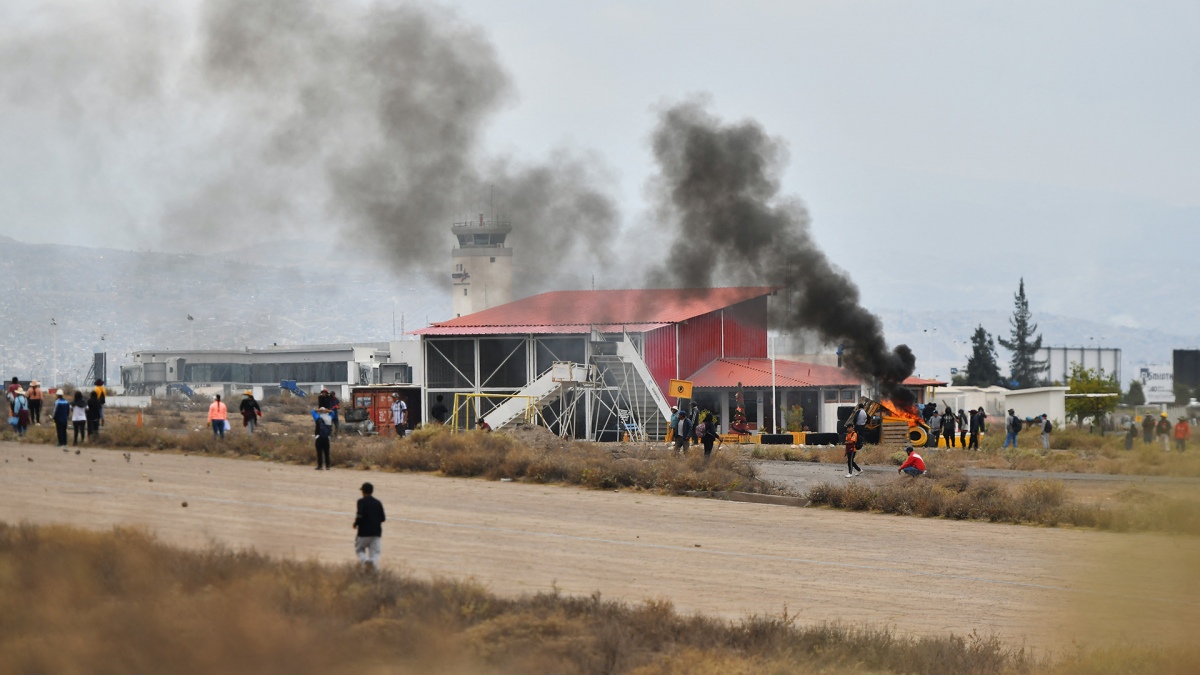 El aeropuerto fue cerrado y evacuado luego de que los manifestantes ingresaran a sus instalaciones "destruyendo la infraestructura de seguridad e incendiando la caseta de control", dijo Aeropuertos Andinos del Perú (AAP), la empresa que administra el aeropuerto Alfredo Rodríguez Ballón de Arequipa, mientras que medios locales informaron de al menos cuatro heridos en enfrentamientos con la Policía.