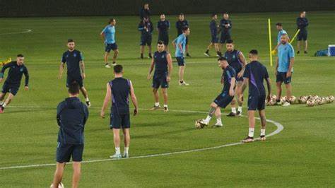 Tras un mes de concentración en la Universidad de Qatar, el cuerpo técnico hizo su ensayo definitivo de cara al partido de este domingo a las 12 en el estadio Lusail ante Francia.