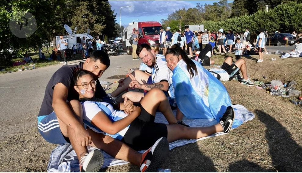 Cientos de hinchas con camisetas de la selección nacional y banderas celestes y blancas se concentraban esta mañana en el Obelisco, en pleno centro porteño, y en las puertas del predio de la AFA, en el partido bonaerense de Ezeiza, para acompañar la caravana de festejos que el equipo Campeón del Mundo realizará por gran parte de la ciudad de Buenos Aires.