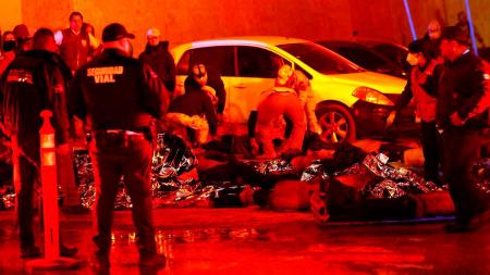 Bomberos y rescatistas colocaron varios cuerpos cubiertos con mantas color plata en la zona del estacionamiento del centro, localizado cerca de la frontera con Estados Unidos, según imágenes de canales de televisión mexicanos.