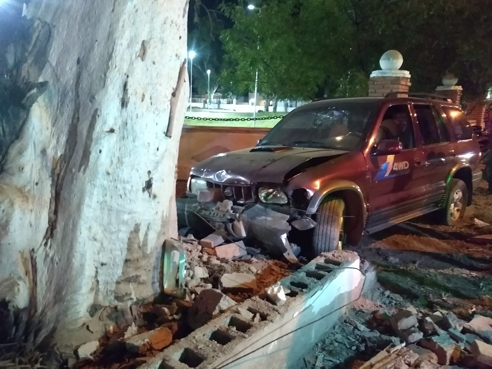 Según se informó, siendo las 20:47 horas del sábado se produjo un siniestro vial por Luis “Matatín” de la Fuente detrás del Regimiento Nº15. Un vehículo kia Soportage color bordo al mando de Juan Alberto Santirzo (64) por razones que se desconocen colisiona contra un árbol.