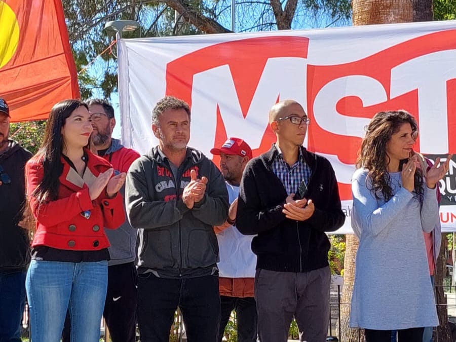 Este miércoles al mediodía, en la plaza 25 de Mayo hicieron un acto en el marco del cierre de campaña. Contó con la participación de la referente nacional y precandidata por el MST, Celeste Fierro.