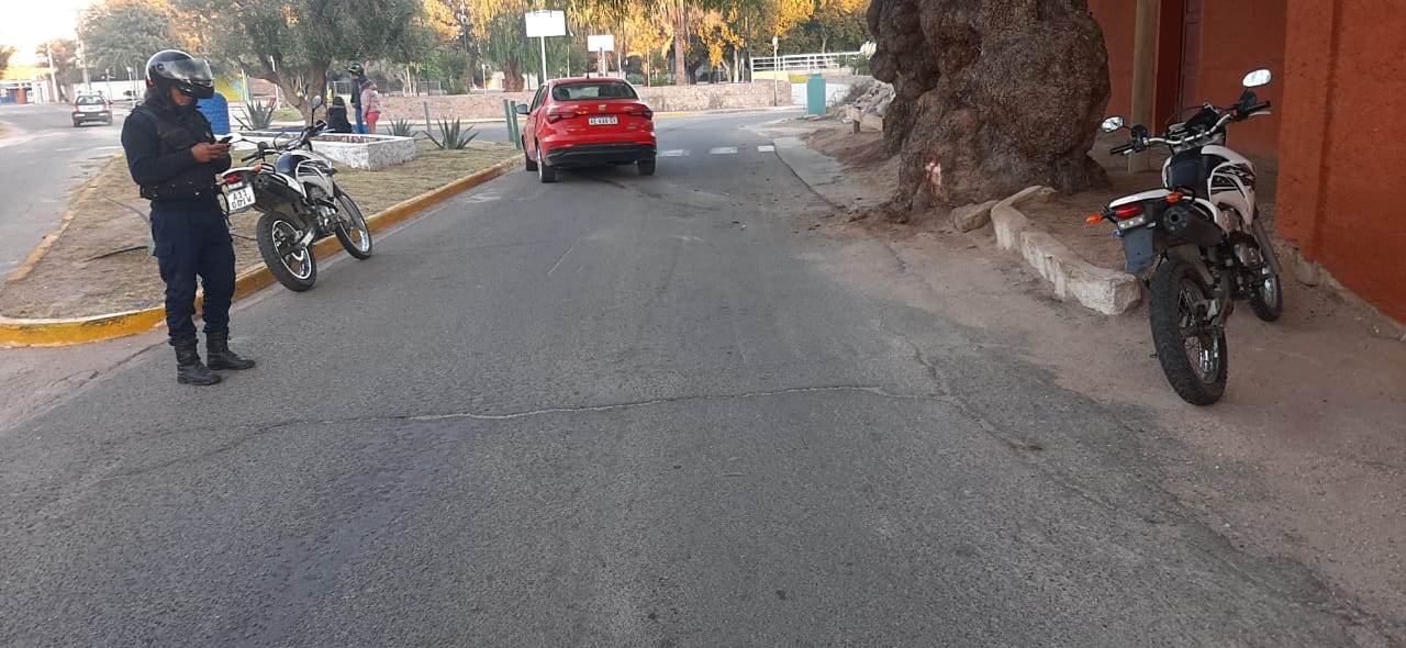 La División de Accidentes Viales, a las 7:30 horas, toma conocimiento del hecho, mediante un llamado al 101 de una médica. Al llegar al lugar se encuentran con un automóvil marca Fiat Crono de color rojo, que chocó con un árbol en la intersección de las calles Casimiro Godoy y Roque San Peña del barrio San Antonio, conducido por De la Fuentes Milagros Noely de 23 años, con domicilio en barrio Centro, acompañada de De la Fuentes María Carla de 28 años, del barrio Estación y Puentes Rocío Celeste de 22 años, con domicilio en barrio Universitario, el automóvil circulaba en sentido Este a Oeste donde impactó con una planta, producto del choque habrían trasladado a las acompañantes al hospital.